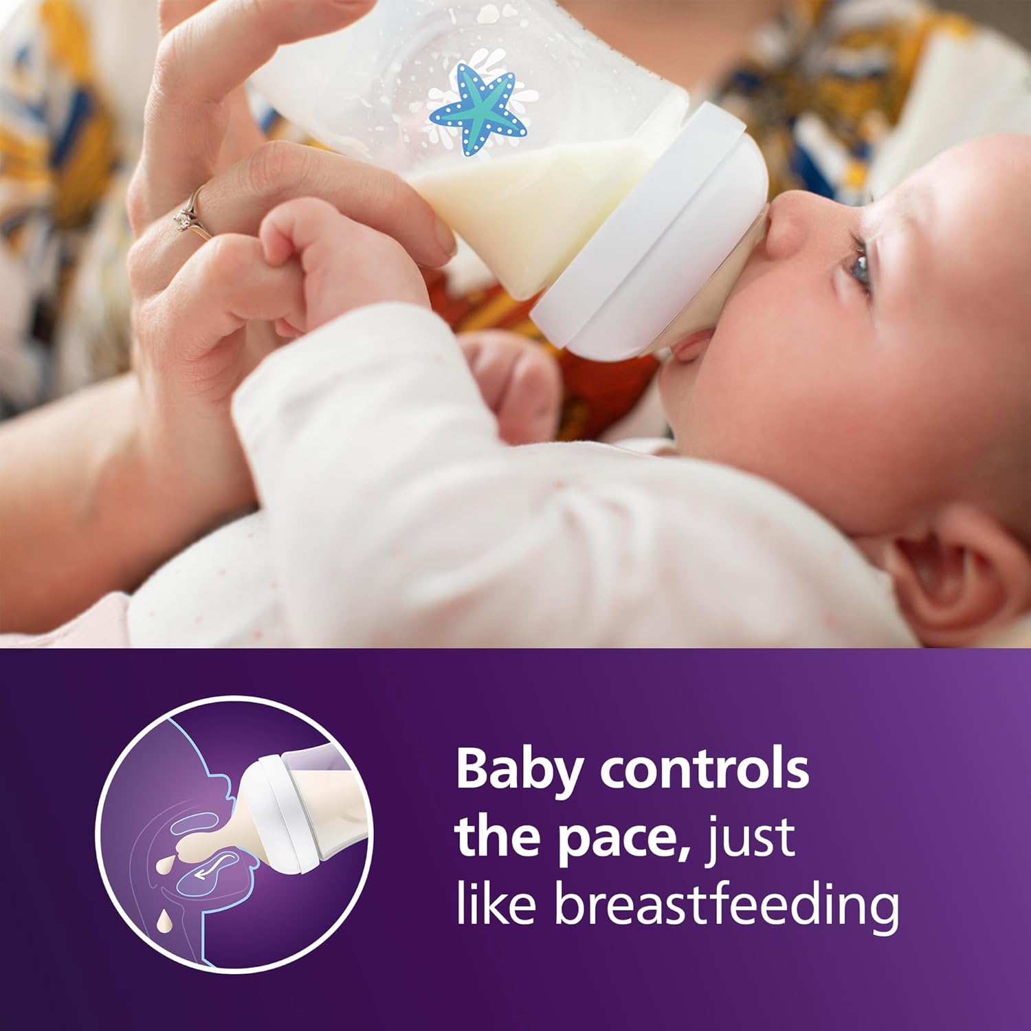 Philips Avent Natural Baby Bottle with Natural Response , with Sea Design, 9oz, 4pk, SCY903/68